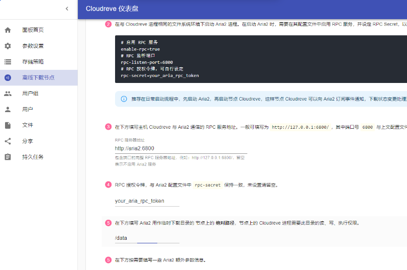 [不可修改] RPC 服务器地址 => http://aria2:6800