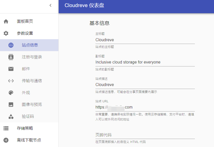 4.3 管理面板设置网站信息(站点url)