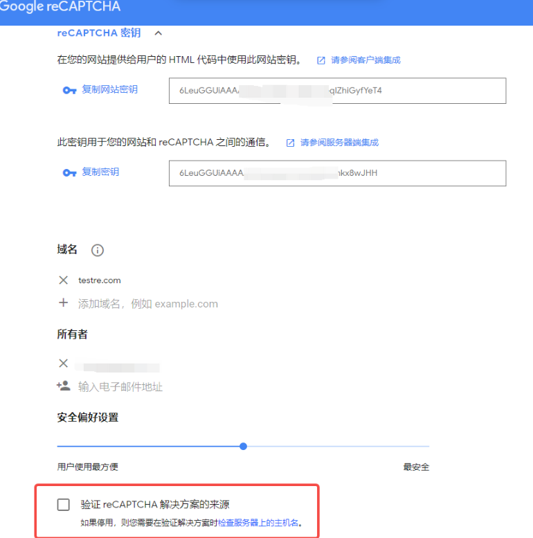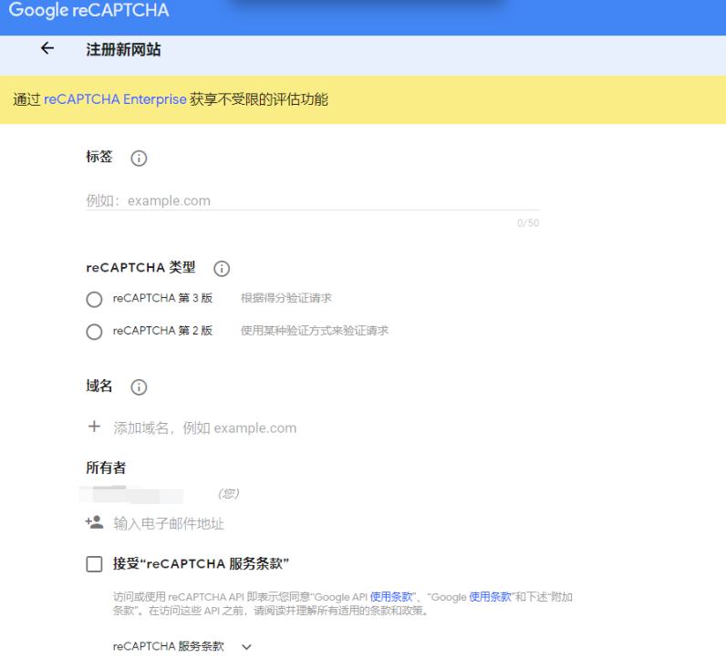 创建新网站:https://www.google.com/recaptcha/admin/create