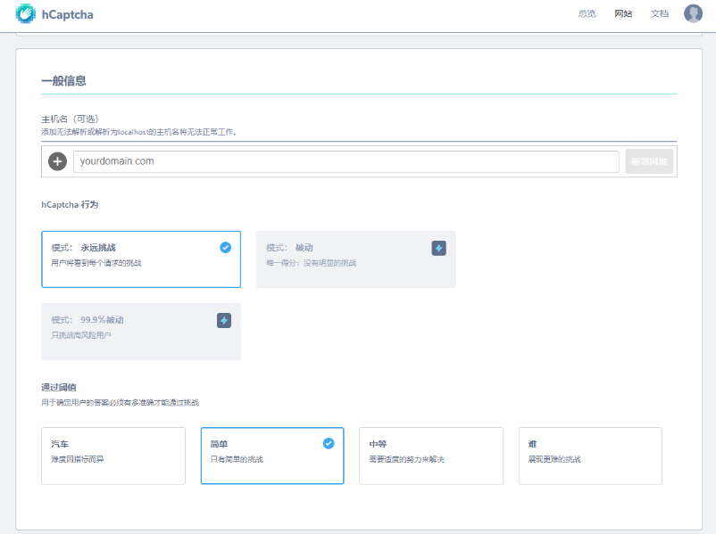 创建新网站:https://dashboard.hcaptcha.com/sites/new
